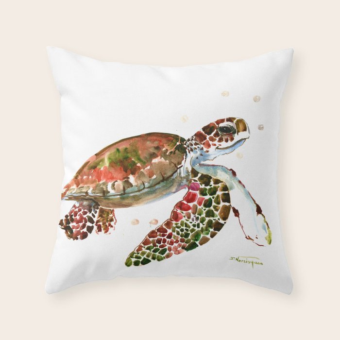Sea Turtle Brown Olive Green Pink Shades Throw Pillow By Sureart